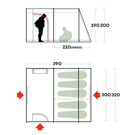 2Ideale per il campeggio stanziale, ampia e munita di ampio abside anteriore.